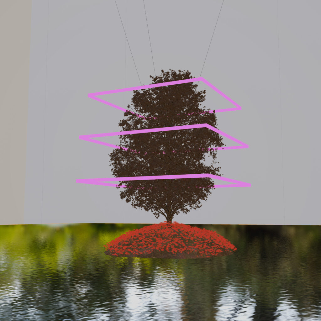 "On a tiny island, shrouded in dark waters, stood a solitary tree, its branches reaching up to the sky. Lost voyagers caught glimpses from afar, drawn toward the island's enigmatic allure by the faint shimmer of the neons and the enigmatic presence of the lone tree amidst the boundless ocean."